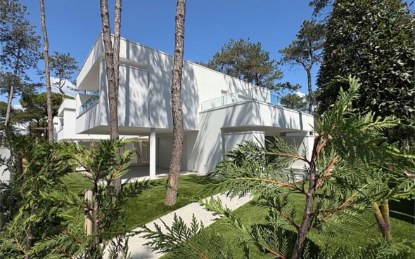 Eingebettet ins Grüne von Lignano Pineta, in einer der exklusivsten und ruhigsten Wohngegenden, bieten wir eine freistehende Villa in Neubauausführung an, die höchsten Ansprüchen an Wohnkomfort, modernes Design und Energieeffizienz gerecht wird.